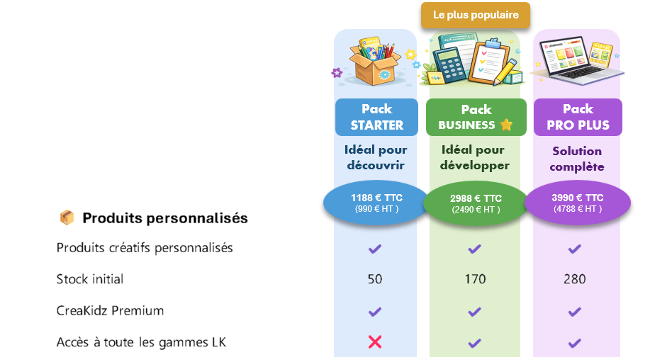 Le modèle LearnyKids permet de créer une activité à la fois porteuse de sens et avec un réel potentiel de revenus, grâce à une combinaison de produits, de ressources digitales et d’outils pensés pour faciliter le développement de votre activité.